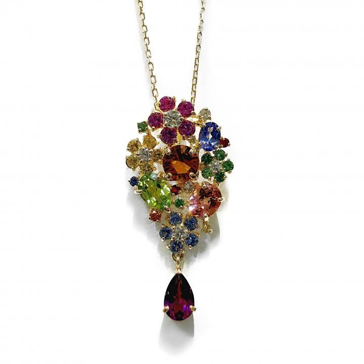 18K YG マルチカラーペンダント